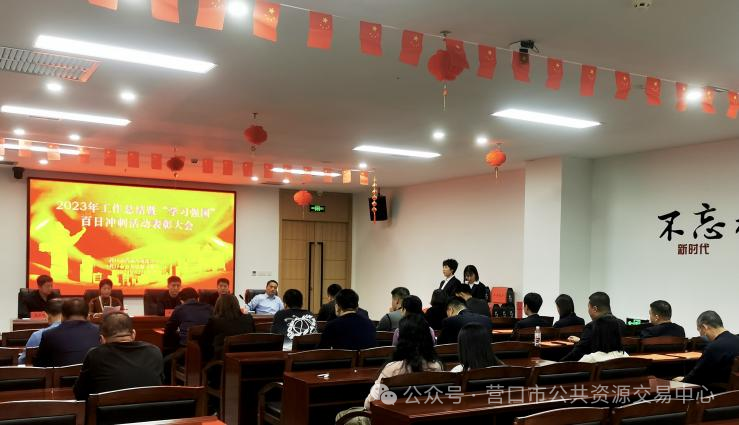2月6日,营口市营商环境建设中心(营口市公共资源交易中心)(以下简称“中心”)召开2023年度工作总结暨“学习强国”百日冲刺活动表彰大会,全面回顾2023年工作,表彰先进、鼓舞干劲、统一思想、振奋精神。中心党总支书记、主任付东亮出席会议并讲话,党总支副书记、副主任周旭峰主持会议,中心领导班子和全体干部职工参加会议。