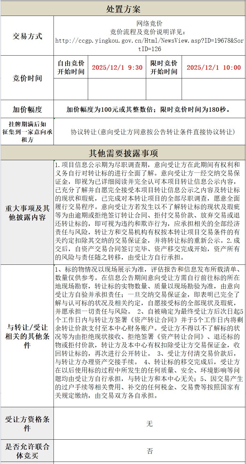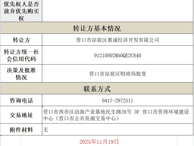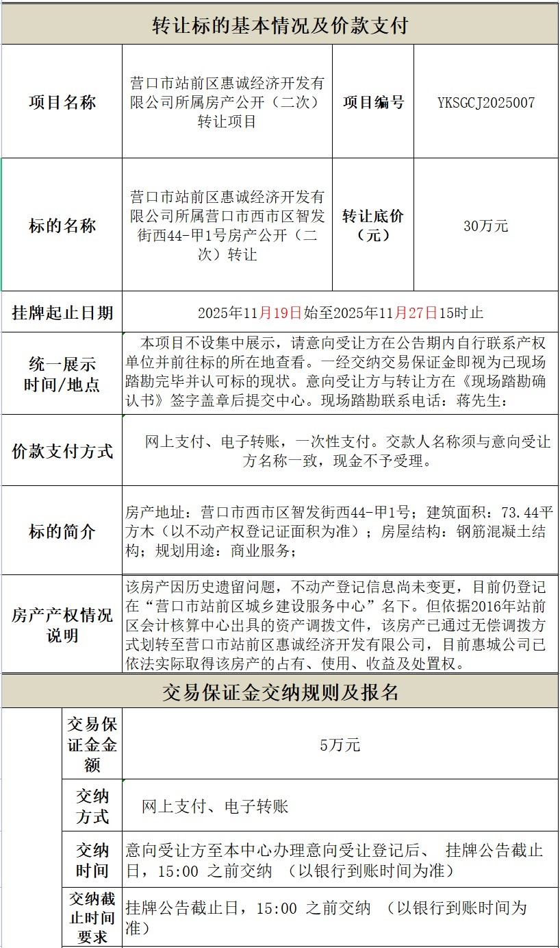 营口市站前区惠诚经济开发有限公司所属西市区智发街西44-甲1号房产公开(二次)转让