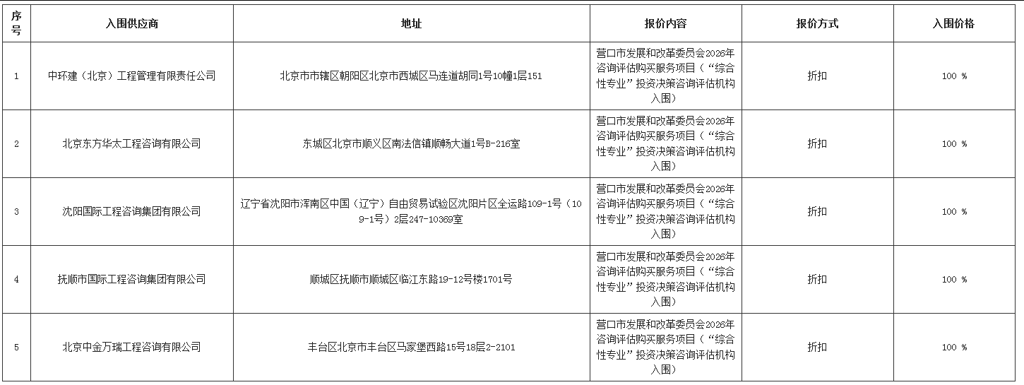 征集项目名称:营口市发展和改革委员会2026年咨询评估购买服务项目